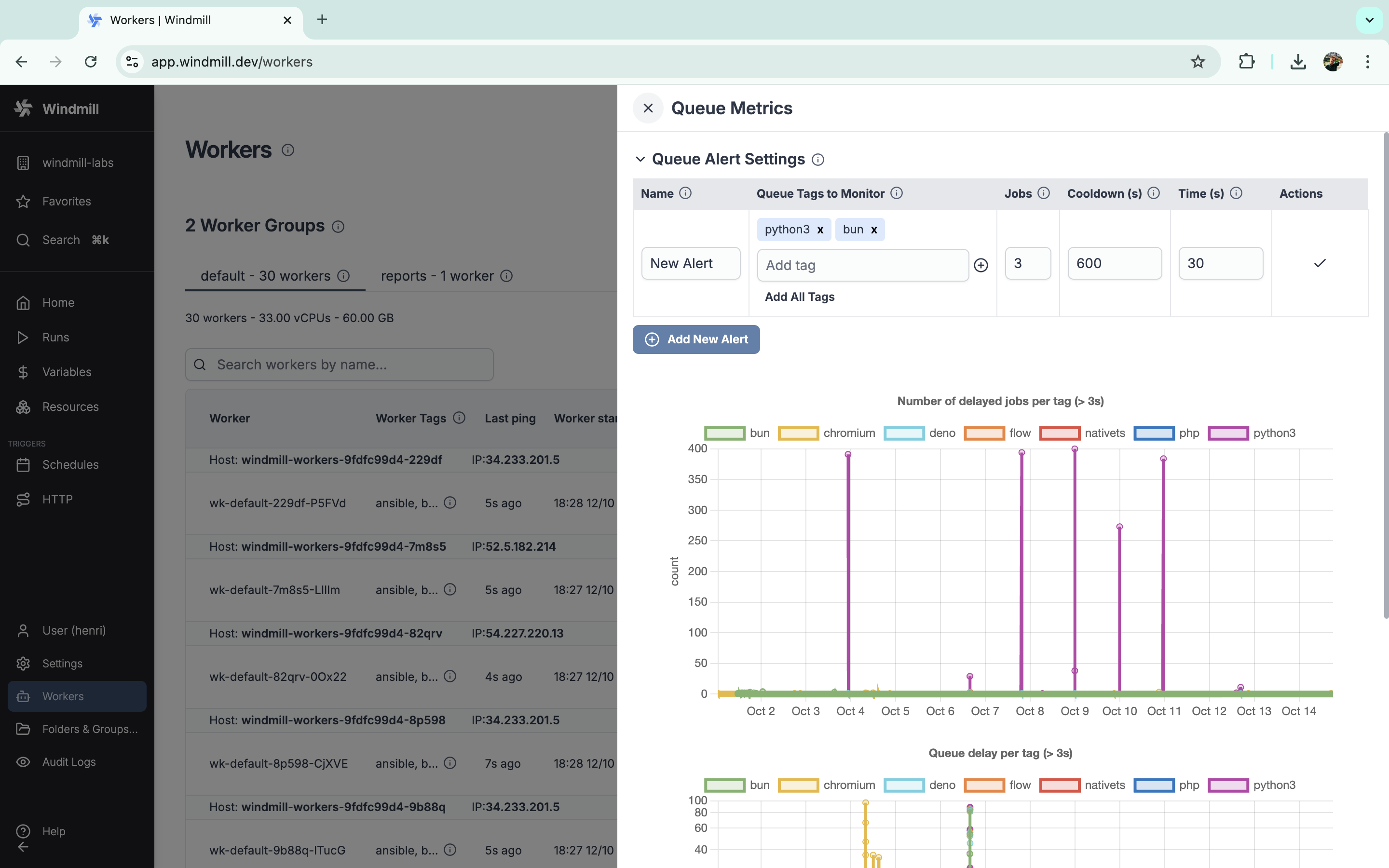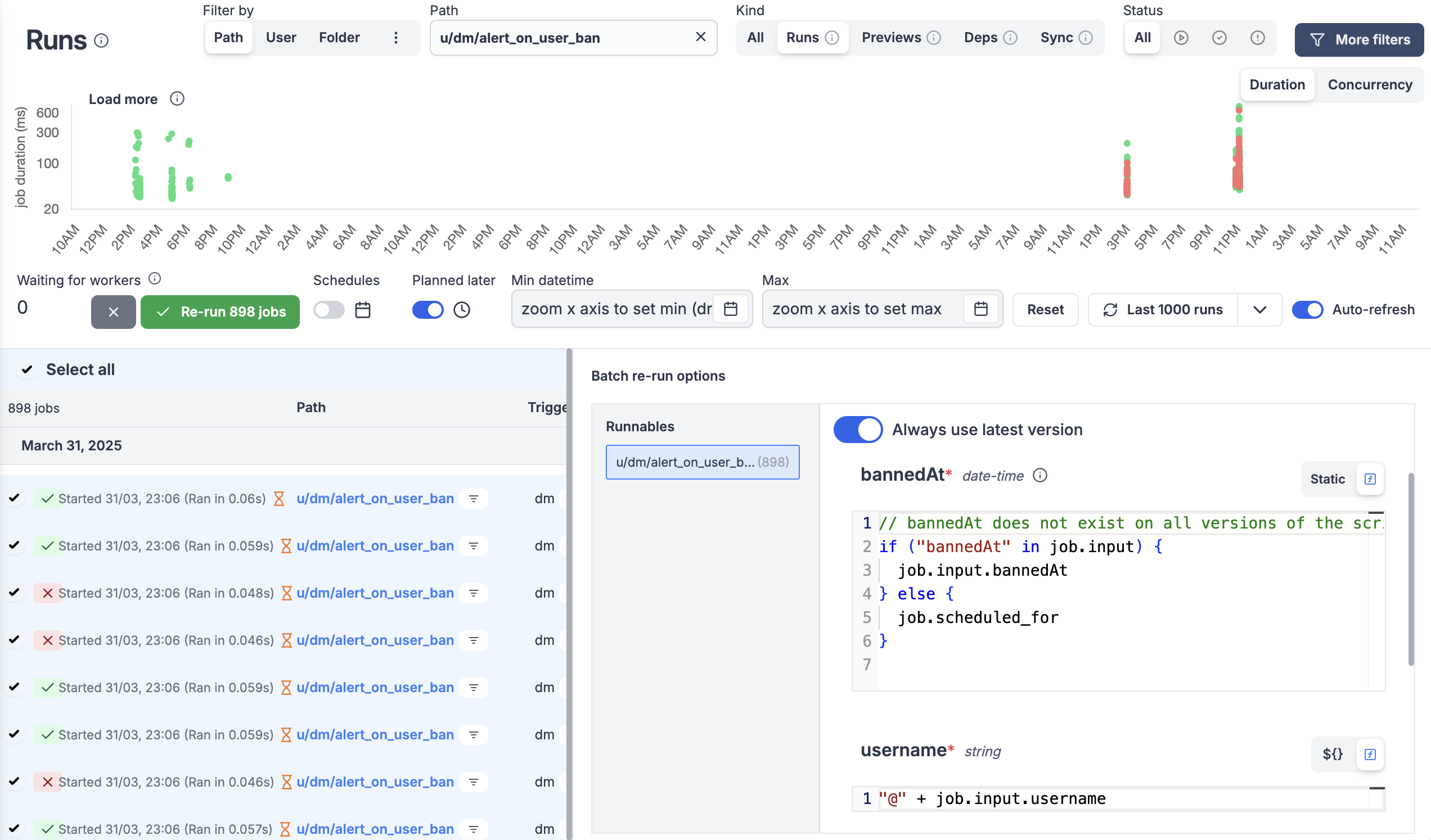 • Large job results: top 10 biggest result payloads (> 1 KB) with configurable scan depth (10k–500k jobs).