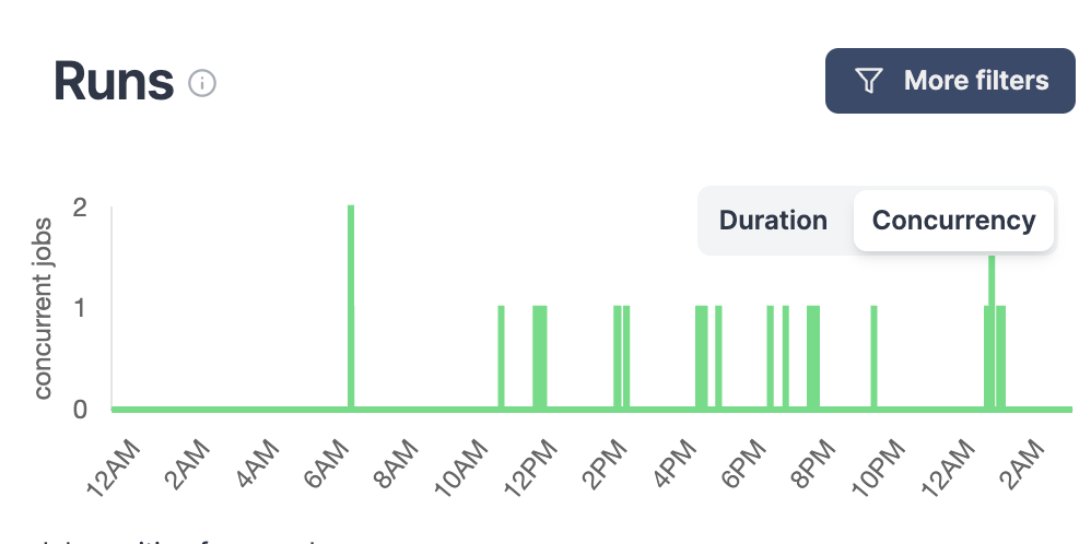 • Workflow timeline UI showing each task as a separate entry with duration bars.
