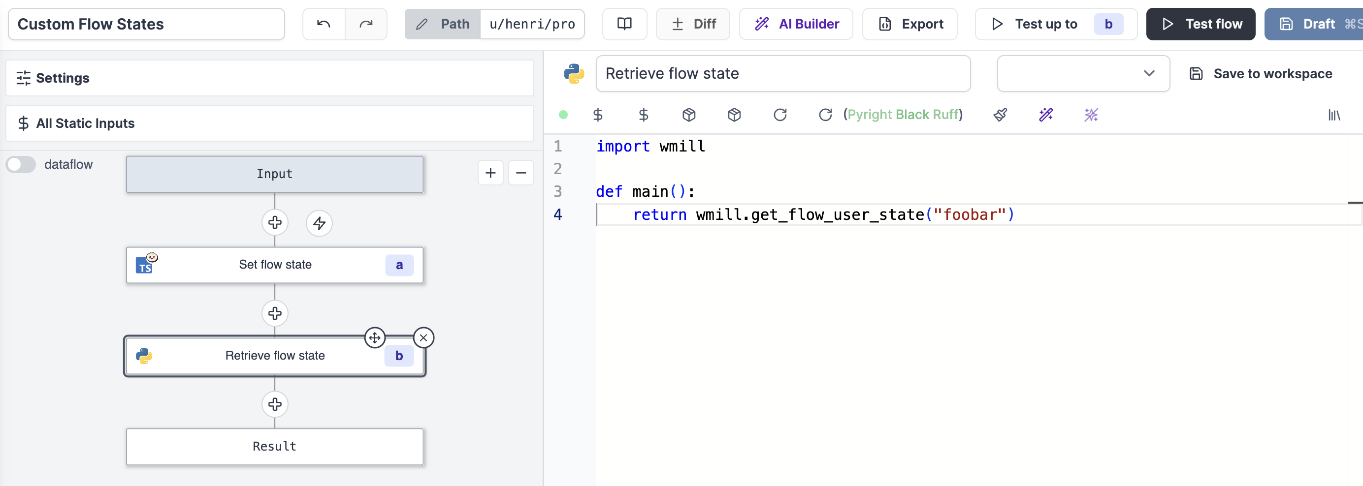 • Retrieve custom flow states from any step.