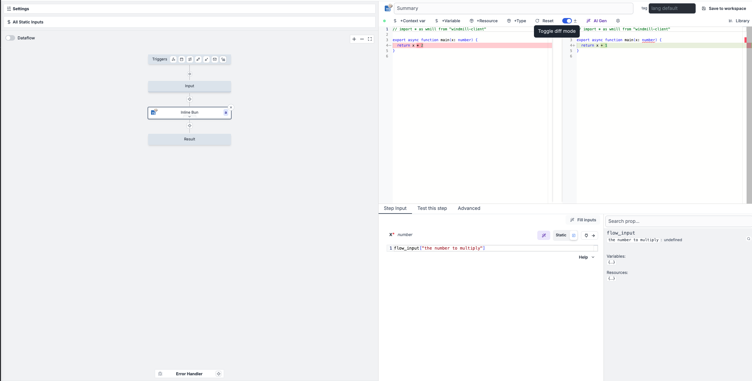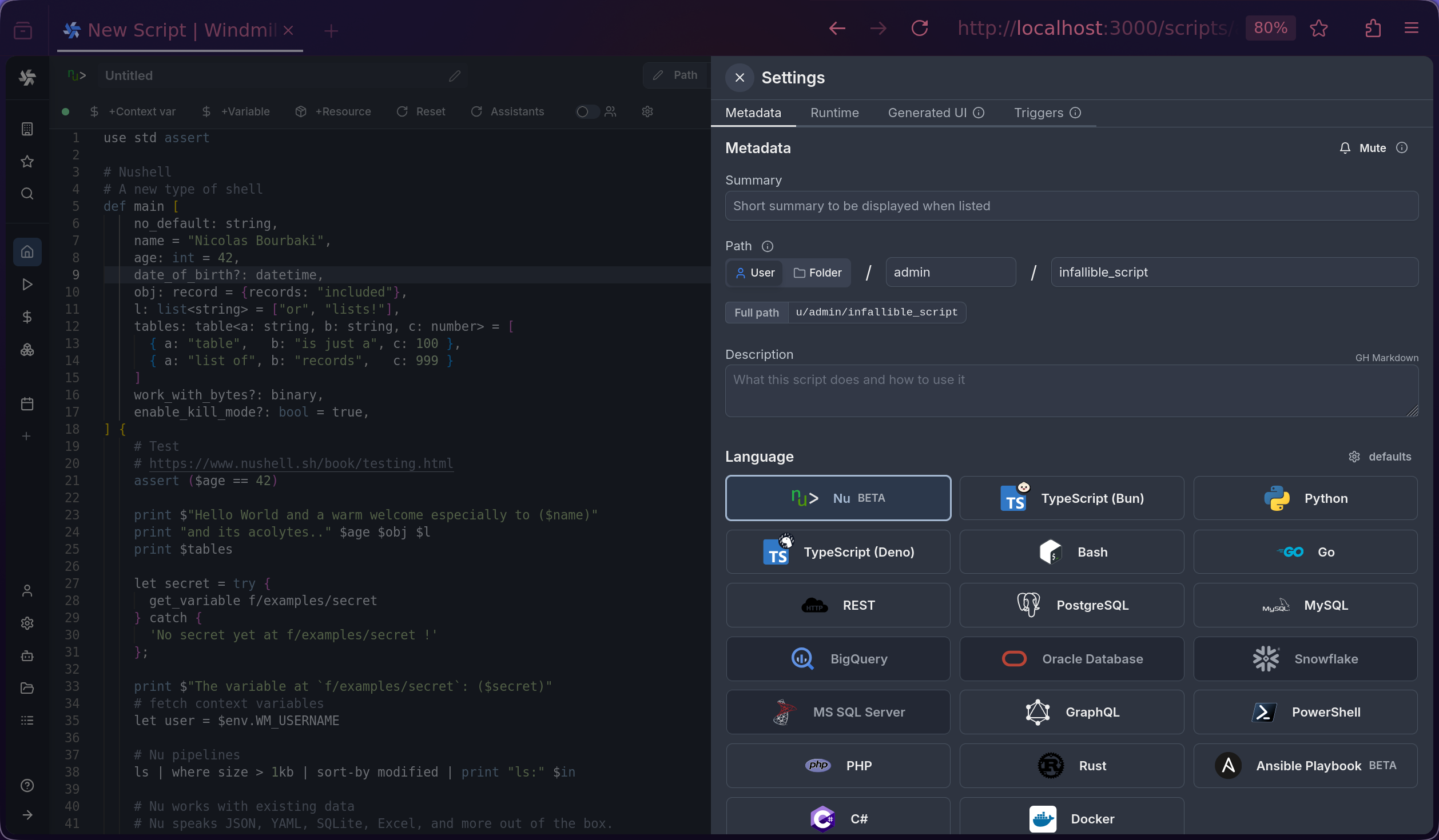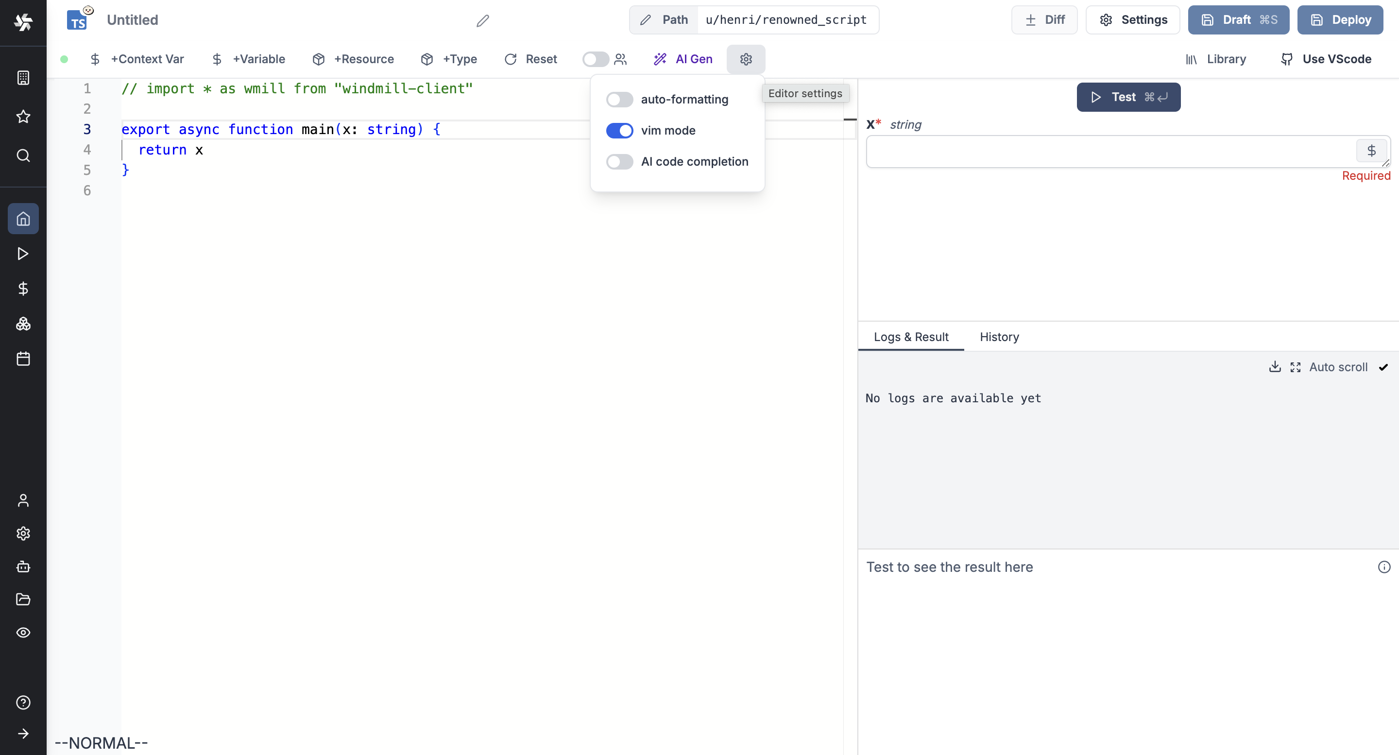 • Built-in helpers for accessing Windmill variables and resources.