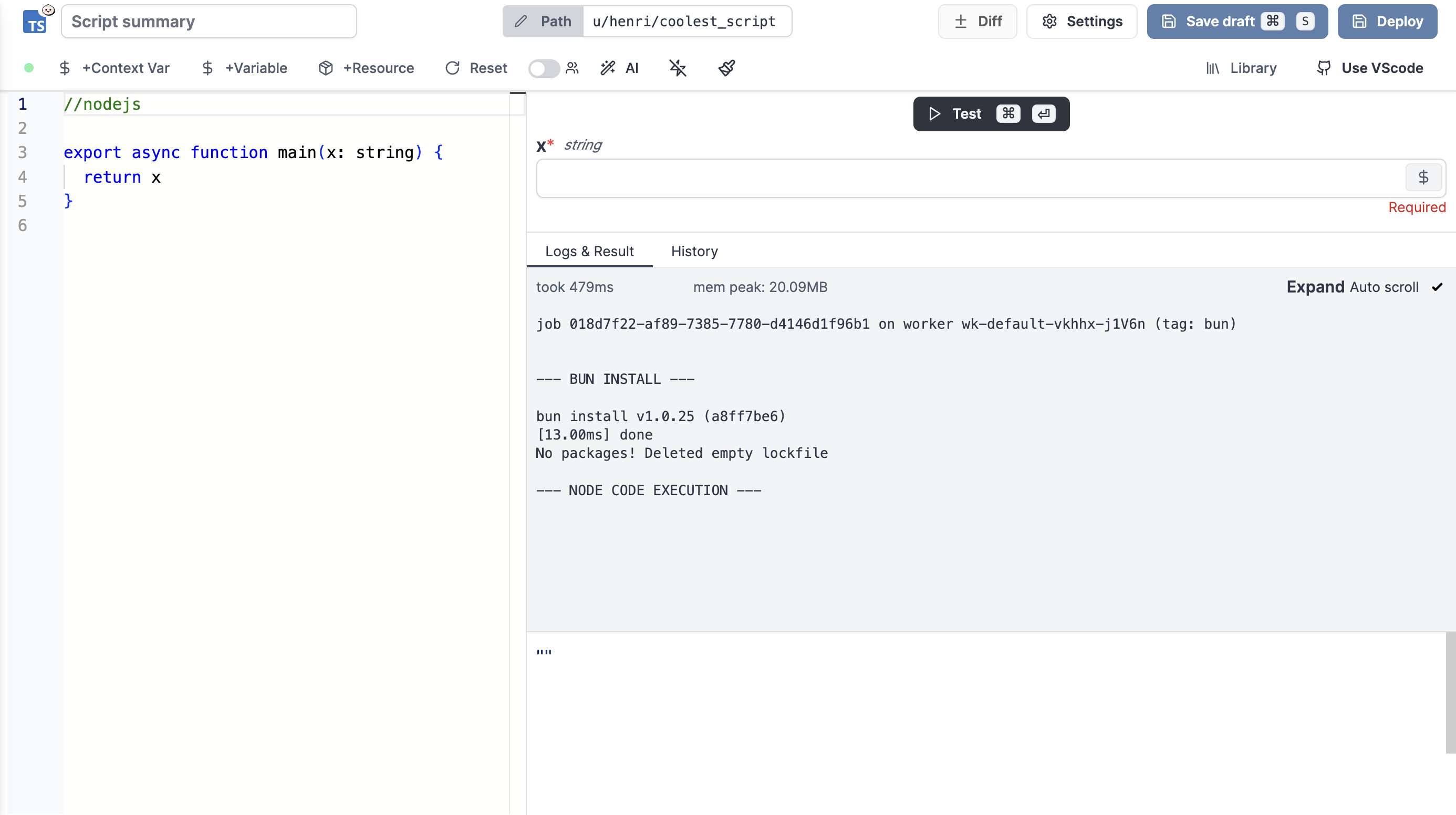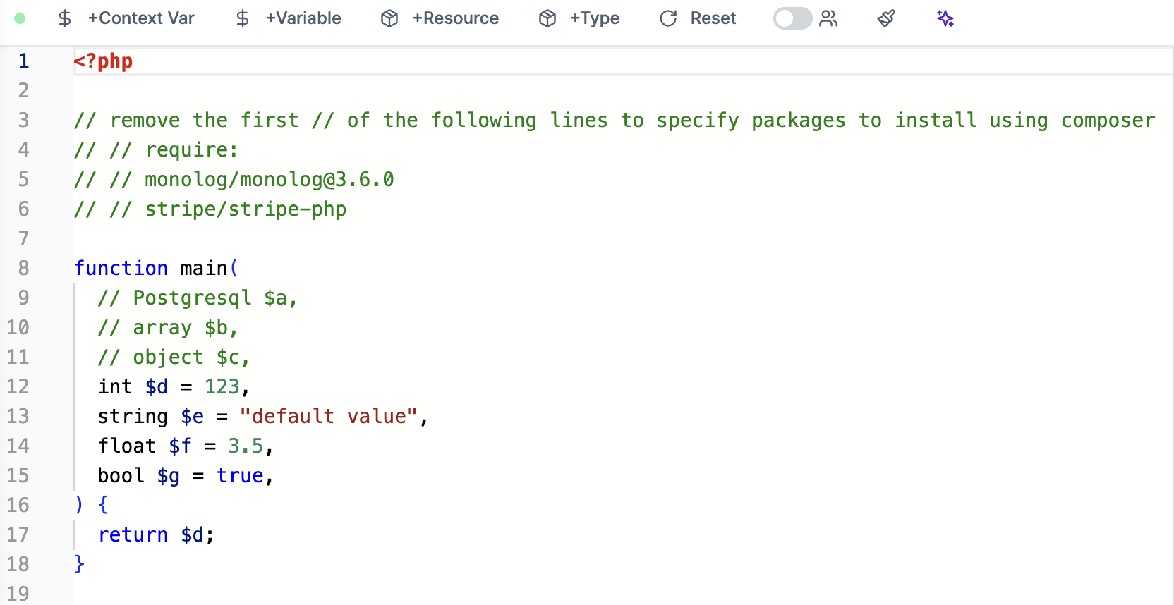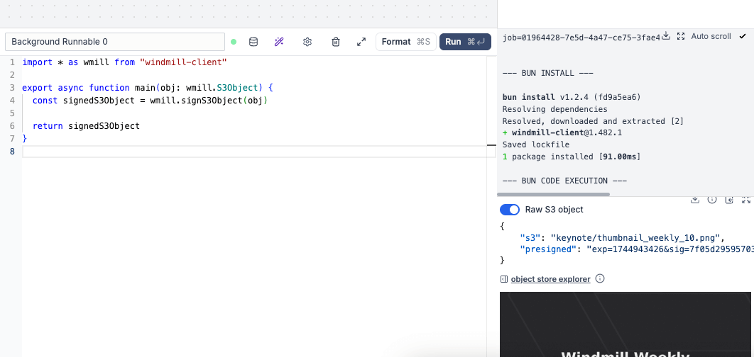 • Built-in helpers for accessing Windmill variables and resources.
